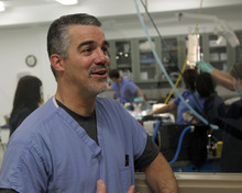 Dr. Richard Orlandi, ear, nose and throat specialist from the University of Utah School of Medicine, speaks outside the operating room after performing an endoscopic procedure on Eli, a black howler monkey who underwent a sinus operation at L.S. Skaggs Animal Health Center at Hogle Zoo Tuesday, Dec. 18. It was his first time operating on a monkey but monkey sinuses are similar to a human's and he said the procedure went well.
