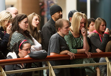 The size of the crowd staggered him, too. Most of the mourners were standing because there weren't enough chairs to fit them all. Some looked down from a balcony on the school's second floor.