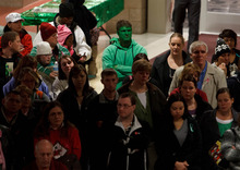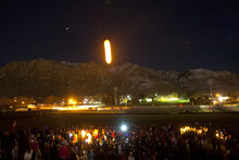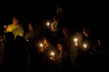 Bagpipers then wailed "Amazing Grace." The lanterns drifted up and disappeared into the cold, dark sky. The crowd members surrounded Parker in a circle and began their warm embrace.