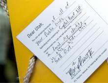"It's kind of sad," one visitor said as he completed his card and added it to the "Letter to Utah" on Tuesday night at the final annual Outsiders Ball in Salt Lake City before the Outdoor Retail convention relocates to Denver after more than 20 years in Utah.