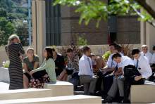 The six-story halls on the southern edge include 200 spacious classrooms along with more than 100 practice teaching rooms and 13 computer labs, which feature high ceilings, giant windows and natural light as well as "ponder spaces" pools of water, a terrace, outdoor tables and velvety grass. Extensive glass exteriors provide stunning views of the nearby Wasatch Mountains.