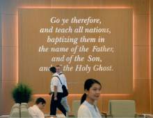 Hallway walls are covered with murals of scripture stories there's even one of Queen Esther from the Bible and quotes such as "the worth of souls is great in the sight of God."