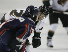 That plan changed dramatically overnight. Having practiced only once with the team, Lewis skated every shift with the No. 1 line of Brad Mills and Colin Vock, besides playing regularly on the power-play and penalty-killing units.