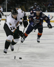 With the NHL's players locked out of their season, the Los Angeles Kings forward contributed a goal and an assist and earned the No. 1 star selection in the Utah Grizzlies' 4-3 shootout victory over Ontario.