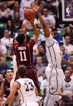 Brigham Young Cougars guard Tyler Haws (3) finished the game with 42 points.
