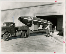 The original caption on this 1959 photo says: "The BOMARC missile, shown on display at Hill AFB, is another weapon for which the Ogden Air Material Area has AF logistic support. Other missiles in OOMA's arsenal are the GAM-87, a guided air-launched missile: Minuteman, Snark, and Genie air-to-air rocket.