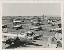 The original caption on this 1944 photo says: "Though desperately needed overseas, these erstwhile giants of the sky -- B-24 Liberator four-engined bombers-- sit impotent and useless at Hill Field headquarters of the Ogden Air Service Command because sufficient civilian workers cannot be found to get them back into the air. They are a few of more than 50 such craft impatiantly awaiting overhaul by the "Keep 'Em Flying" services."
