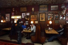 As for "the dead one," that would be the stuffed head of a St. Bernard dog, named Buck, that hangs prominently over a popular booth.