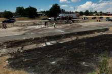 Police investigate the plane crash that killed four people in the median of I-15 freeway Wedne
