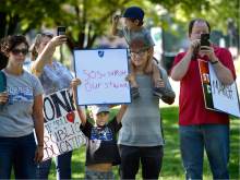 After marching from the Salt Palace to the Utah State Capitol, the "This Land is Our Land March for Public Lands" rallied at the Capitol, Thursday, July 27, 2017.