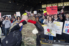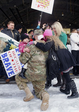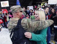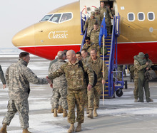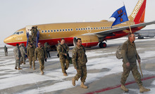 The soldiers who arrived Thursday returned from overseas several days ago and were at Fort Hood, Texas, for processing. They came on two chartered Southwest Air jets, about an hour apart.