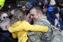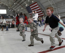 Now Blake, who returned home on a frosty Thursday morning with 150 other Utah National Guard soldiers, faces a challenge: "Getting to know these guys again," he said, gesturing to his 4-year-old twins, Addison and Aiden, and his 2-year-old, Ashtynn.