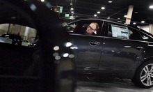 Ken Garff Jaguar sales assistant Jake Noyce carefully steers a Jaguar onto the showroom floor Thursday January 17, 2013 in Sandy. The Utah International Auto Expo starts tomorrow at the South Towne Expo Center.