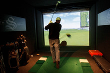 The house features African mahogany floors, a movie theater, swimming pool, Jacuzzi, heated decks and a full-swing golf simulator, where duffers can play the best courses in the world.