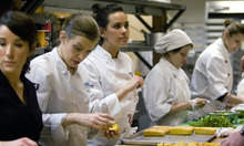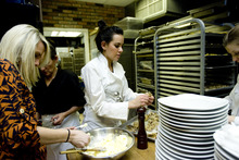 Angry eggs • Spicy deviled eggs with homemade green sriracha, called "Angry eggs," are just one of the appetizers that will be served Wednesday night during an exclusive cocktail party for 175 Sundance filmmakers. Award-winning Los Angeles chef Susan Feniger, the owner of Street and Border Grill restaurants, is creating the food for the event in the Cuisine Unlimited catering kitchens in Salt Lake City using recipes from her recent cookbook Susan Feniger's Street Food. Besides the eggs, filmmakers will also be served Feniger's Japanese fried chicken with yuzu kosho dipping sauce and spiced lamb meatballs. "Those are three dishes that people are crazy about," she said.