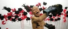 81-year-old old Japanese artist, Ushio Shinohara with his art, at the Central Utah Art Center, Monday, January 21, 2013. Shinohara is known for boxing his art onto a canvas, he is featured in the Sundance documentary film "Cutie and the Boxer."