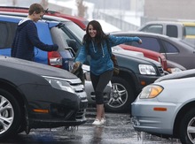 Robert Nischwitz, in town for one of the conventions, is used to freezing rain in his hometown of Cincinnati, though even he had a few slips walking around Salt Lake City on Thursday. He never completely fell, though, and advised Utahns not used to such an event to keep their eyes peeled for the shine of ice on the ground, and keep their hands out of their pockets so that they can catch themselves if they slip.