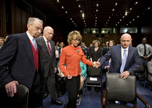 Wednesday's hearing, which highlighted the polarization over gun rights, was arguably the most packed congressional event since the controversial health care meetings in 2009. Scores of people waited in long lines in hopes of grabbing a seat, while Chairman Patrick Leahy occasionally slammed down his gavel to quiet audience laughter or shouts.