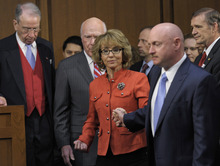 Giffords, a former Arizona representative who still speaks in stunted sentences after a gunman in 2011 shot her in the head and killed six others during a public appearance near Tucson, begged the senators to be "bold" and "courageous" in acting to stem more gun tragedies.