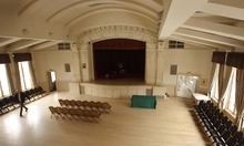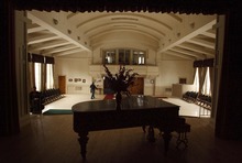 The structure also has a sizable kitchen and several sitting rooms as well as a second-floor meeting room adorned with leaded glass windows. Original chairs and tables, silverware and two grand pianos remain on-site, as well.