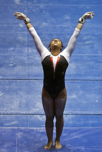 Key moment • Tory Wilson scores a career-high 9.975 on the vault to earn her fourth straight vault title.