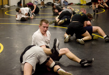 "I just work on the three takedowns that I really like and just drill over and over, 20 to 30 times each after practice," Colton said. "It's given me a lot of confidence on my feet, knowing that I can go in and take down just about anyone I go against."