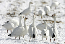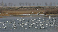 Bob Walters, watchable-wildlife coordinator for the DWR, says one of the most dramatic scenes involving snow geese is their daily departure from nearby fields to the reservoir, which usually takes place between 9 a.m. and 10:30 a.m.
