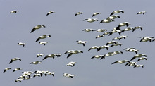 Blair Stringham, migratory game bird coordinator for the Utah Division of Wildlife Resources (DWR), says some white/light geese head through Utah in the fall but most take a different route.