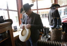 The shop also refurbishes them, such as the battered hats sent in by the brothers Jake, Cody and Jesse Wright, saddle bronc riders from Milford. Jake Wright said he has two Burns hats. Whenever he gets thrown and his hat gets smashed, "I send it in. I usually have one with me and the other in the shop at any one time."
