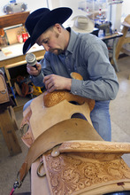 Aurora rancher Rick Nelson said taking his grandfather's 100-year-old saddle into Burns to be refurbished was akin to entrusting a prized antique car to a mechanic. The saddle is heavy, patched, and the maker's stamp has long worn away, but it's so durable that Nelson has used it since he was 13 years old.