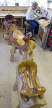 Burns saddles cost from $3,000 to $8,000, depending on the level of detail in the artwork. Saddles have more than 50 pieces, which are put together over a 40-hour to 150-hour period. Artisan-made saddles can take much more time to construct, and cost tens of thousands of dollars more, but most are considered decorative, although they could be used on a horse.