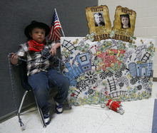Cooper Kirby poses as Butch Cassidy, in the wax museum at Copper Canyon Elementary School, in West Jordan, Thursday, February 21, 2013. The annual mock wax museum is a third grade research project.