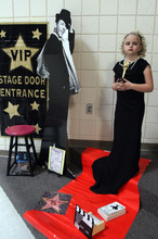 Ginger Rogers poses in the wax museum at Copper Canyon Elementary School in West Jordan, Thursday, February 21, 2013. The annual mock wax museum is a third-grade research project.