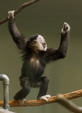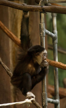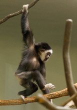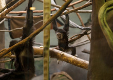 Now, both parents dote on the boy. When they move around the exhibit case, one parent is in front of him, one behind. As he plays in the tangle of vine branches, one parent is up above, the other down below. "They baby-sit, groom and play with him all day," Richins-Benson said. "They are the best parents."