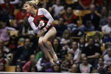 KEY MOMENT • Mary Beth Lofgren scores a 9.875 to end the beam rotation for the Utes after teammate Georgia Dabritz fell.
