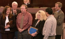 Dickerson said he pulled into a nearby Kinko's. When his wife left the shop, she came within 20 feet of the figures. He could tell she knew the man was Mitchell, Dickerson said. "She kind of got this electrified look on her face."