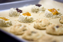 With a dinner spoon and spoon balls of dough onto a greased baking sheet. Bake 12 to 15 minutes or until golden brown on top. Remove and let cool on the pan for 2 to 3 minutes. Remove from pan and cool completely on a rack. Serve immediately or store in an airtight container.