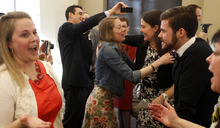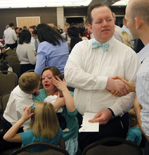Cheers and shouts of "Yes!" and "Exactly where I wanted!" broke out as U. students opened their envelopes amid families in the University Guest House Ballroom at Fort Douglas.