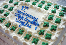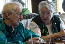 On Sunday, The Utah Sunday Singles Social Group, with most members wearing green necklaces that bore the message "Kiss Me, I'm Irish," celebrated its 40th anniversary of fellowship among Utahns over the age of 50 who refuse to be alone.
