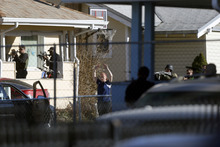 Law enforcement officers near the scene of a shooting at 1159 S. Foulger Street Tuesday March 19, 2013.