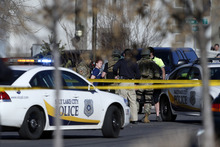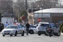 Law enforcement officers near the scene of a shooting at 1159 S. Foulger Street Tuesday Ma