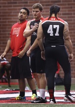 Lotulelei looked fit Wednesday. He did 38 reps on the bench press, which would have tied him for the top mark at the combine and was one off his personal best. He looked strong in all the position drills.