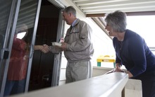 Along with his Meals on Wheels delivery Wednesday, Taylorsville resident Bill Moss had a surprise visitor. Taylorsville Mayor Jerry Rechtenbach personally handed him his chicken dinner.