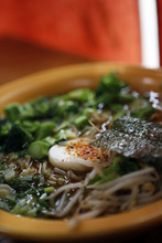 The ramen at Koko Kitchen's is similar to what would be found in Tokyo. The noodle dish uses both pork and chicken broths flavored with shoyu, Japanese soy sauce. The bowls are garnished with bean sprouts, chopped green onions and a hard-boiled egg, cut in half. Customers get their choice of chicken, tofu or, the restaurant's best seller, Chinese-style barbecue pork called char siu.