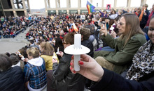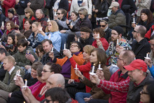 During the rally held at the Salt Lake City Library amphitheater, some 400 participants held candles while "We are Family" by Sister Sledge played over the P.A. system. Russell Baker-Gorringe, a longtime activist and speaker, said many people in the LGBT community don't come forward because they're afraid to come out of the closet.