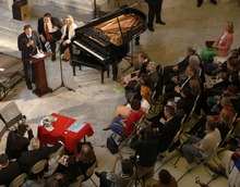 Attendees listen to a speaker during the Celebration of Marriage event, hosted by Alan and