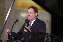 Utah Governor Gary R. Herbert talks during the Celebration of Marriage event, hosted by Alan and Suzanne Osmond, at the Utah State Capitol in Salt Lake City, Utah Tuesday March 26, 2013. The Celebration of Marriage event Coincides with Prop 8 oral arguments before The US Supreme Court. A coalition of pro-family Utah organizations sponsored the event. "My wife Suzanne and I are so pleased to be a part of the Celebration of Marriage," said Alan Osmond. "Every child deserves the chance to be raised in a home with a mom and dad. Though that's not always possible, it is the ideal society should strive for and promote because of the unparalleled good it does for our kids, families and communities."