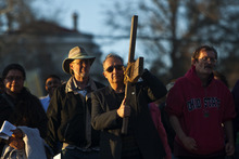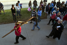 Patrick Rueda, of Salt Lake City, carries a wooden cross during the Good Friday Procession of the Cross Friday March 29, 2013. Since 1983, the Salt Lake Council of Churches has sponsored this annual procession, which is similar to the tradition of the "Via Dolorosa" (Way of Suffering), where pilgrims to Jerusalem follow the path Jesus took to the cross.