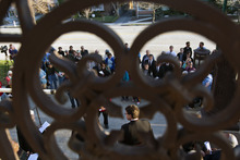 Participants listen to the Rev. Monsingor Joseph Mayo (not pictured) at the Cathedral of the Madeleine during the Good Friday Procession of the Cross Friday March 29, 2013. Since 1983, the Salt Lake Council of Churches has sponsored this annual procession, which is similar to the tradition of the "Via Dolorosa" (Way of Suffering), where pilgrims to Jerusalem follow the path Jesus took to the cross.