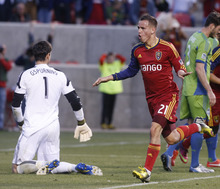 With help from Grabavoy, Joao Plata and rookie Devon Sandoval, RSL peppered Gspurning, launching 25 shots in the game 10 of them on frame. The keeper's seven saves kept Seattle in the hunt. And when Brad Evans blasted a falling ball past RSL goalie Nick Rimando in the 57th minute, Salt Lake's lead was just 2-1.